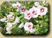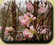 Blütenbälle weiß, außen fleischrot, von intensivem Duft im April - Mai, bis 1,5 m. | ||