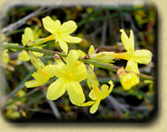 Straff aufrechte, rotbraune Zweige, Blüten in 3 - 5 cm langen, dichten Rispen, Jänner bis März. Duftend. | ||