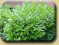Breit, aufrechtwachsend, bis 1 m hohe Sorte mit satter, immer grüner Belaubung. | ||
