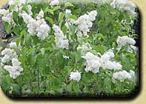 Aufrechter Strauch mit stark duftenden, rahmweißen, einfachen Blüten im Mai - Juni. Für Hecken- und Deckpflanzung. Bis 3 m hoch. | ||